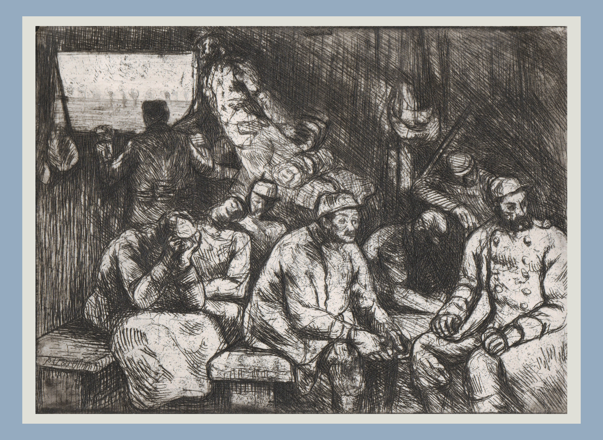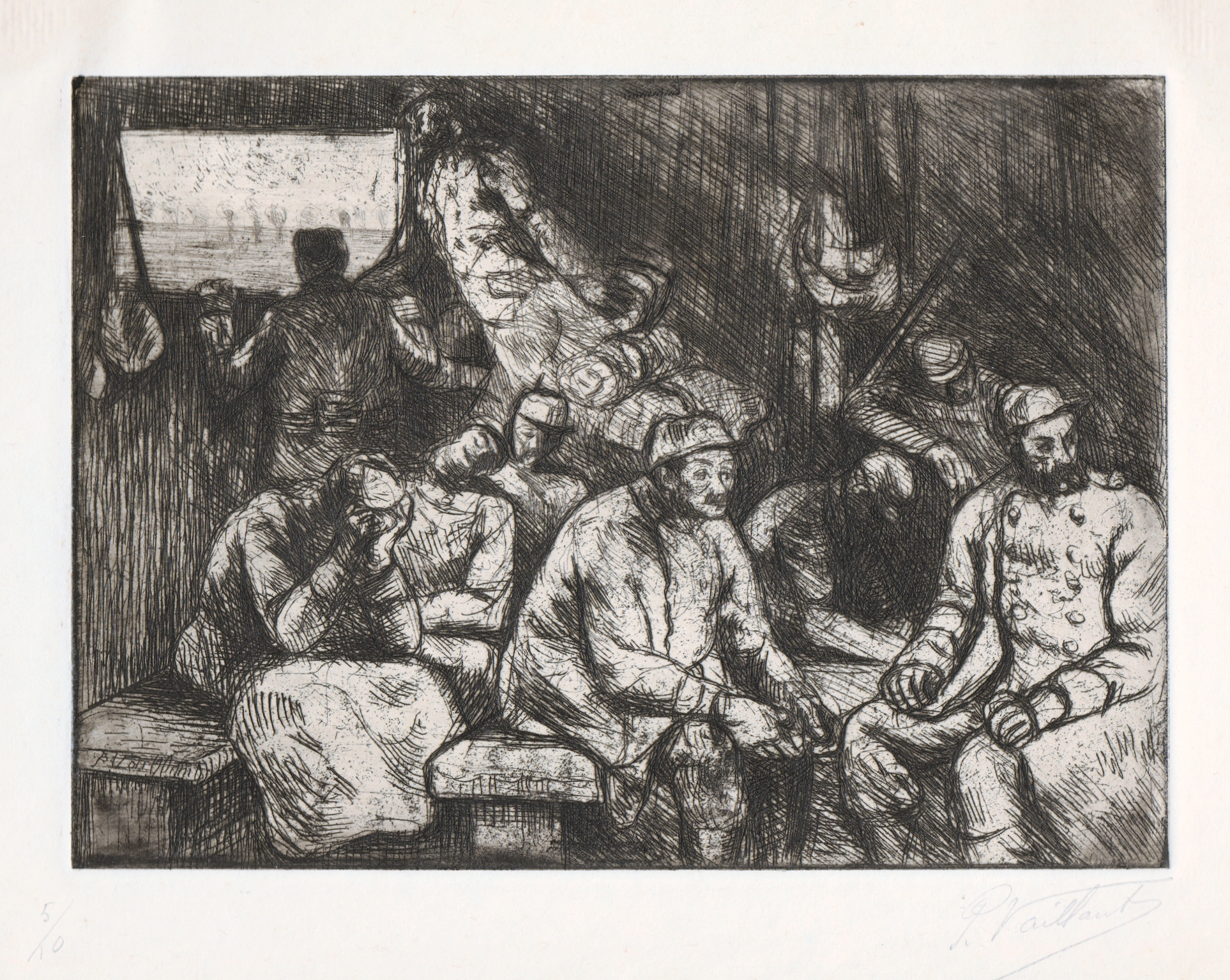 Eau-forte extraite du recueil Vie intime du poilu de Pierre Vaillant