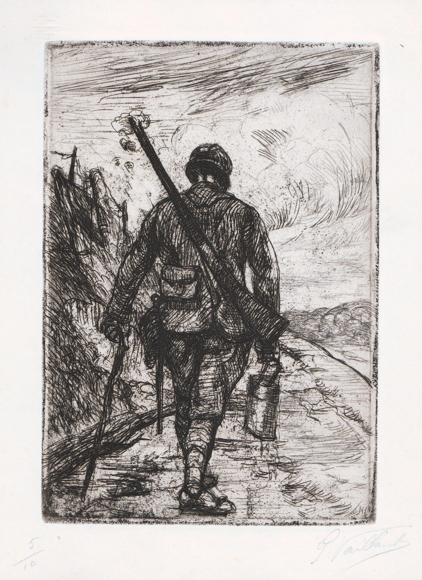 Eau-forte extraite du recueil Vie intime du poilu de Pierre Vaillant