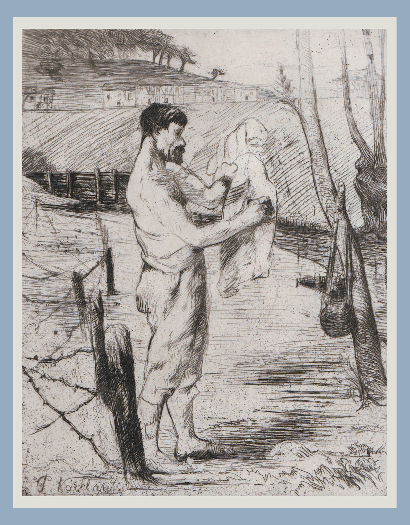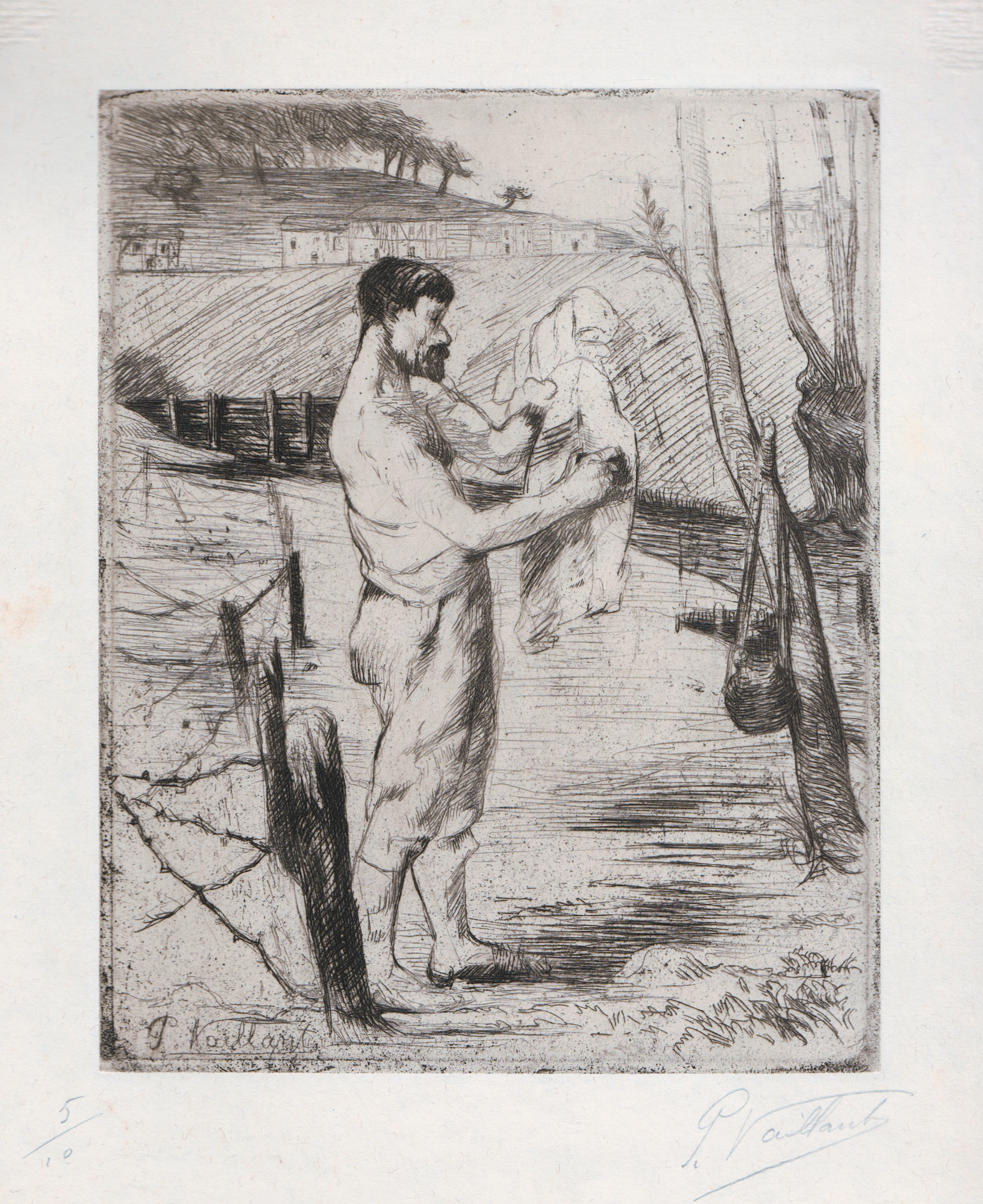 Eau-forte extraite du recueil Vie intime du poilu de Pierre Vaillant