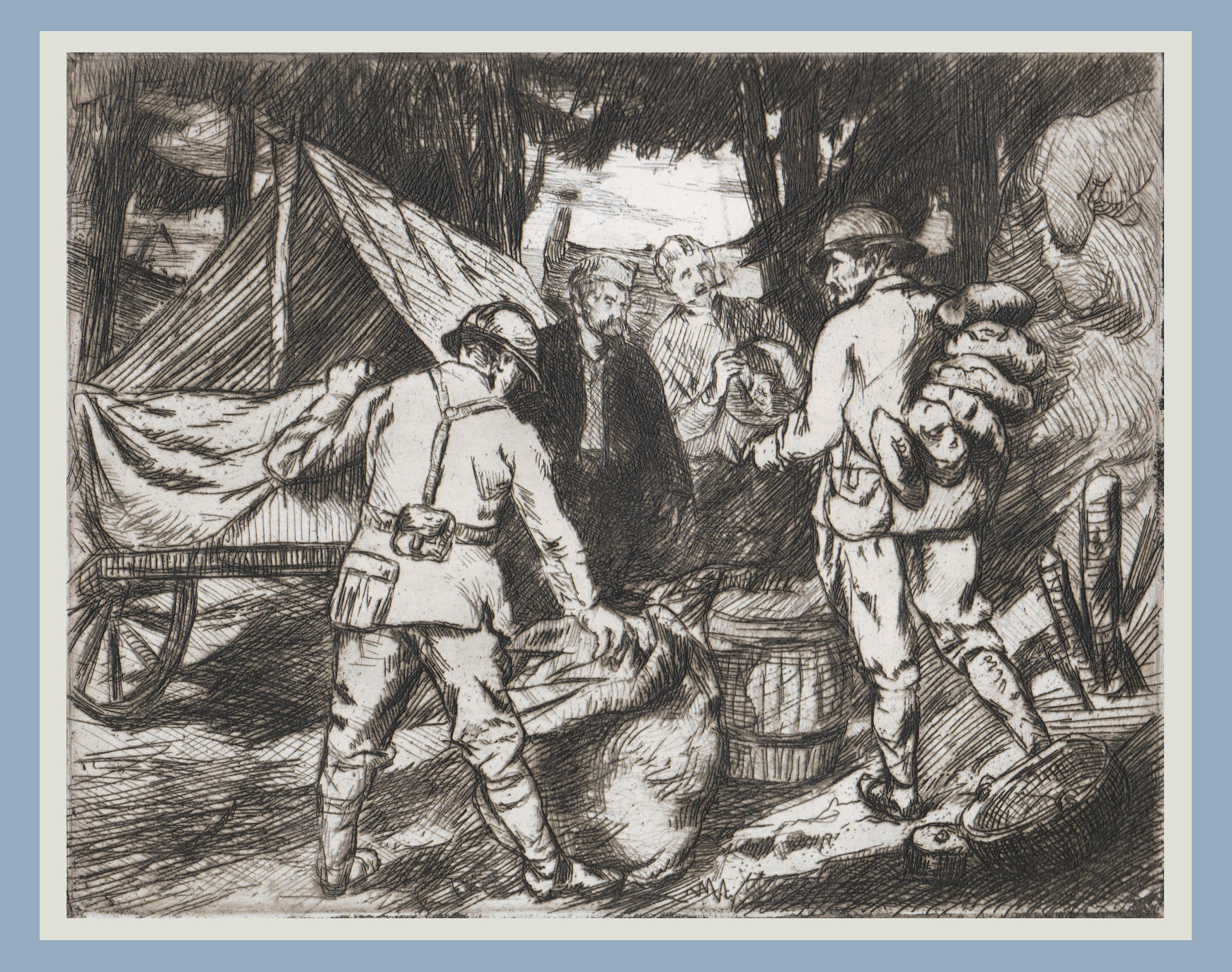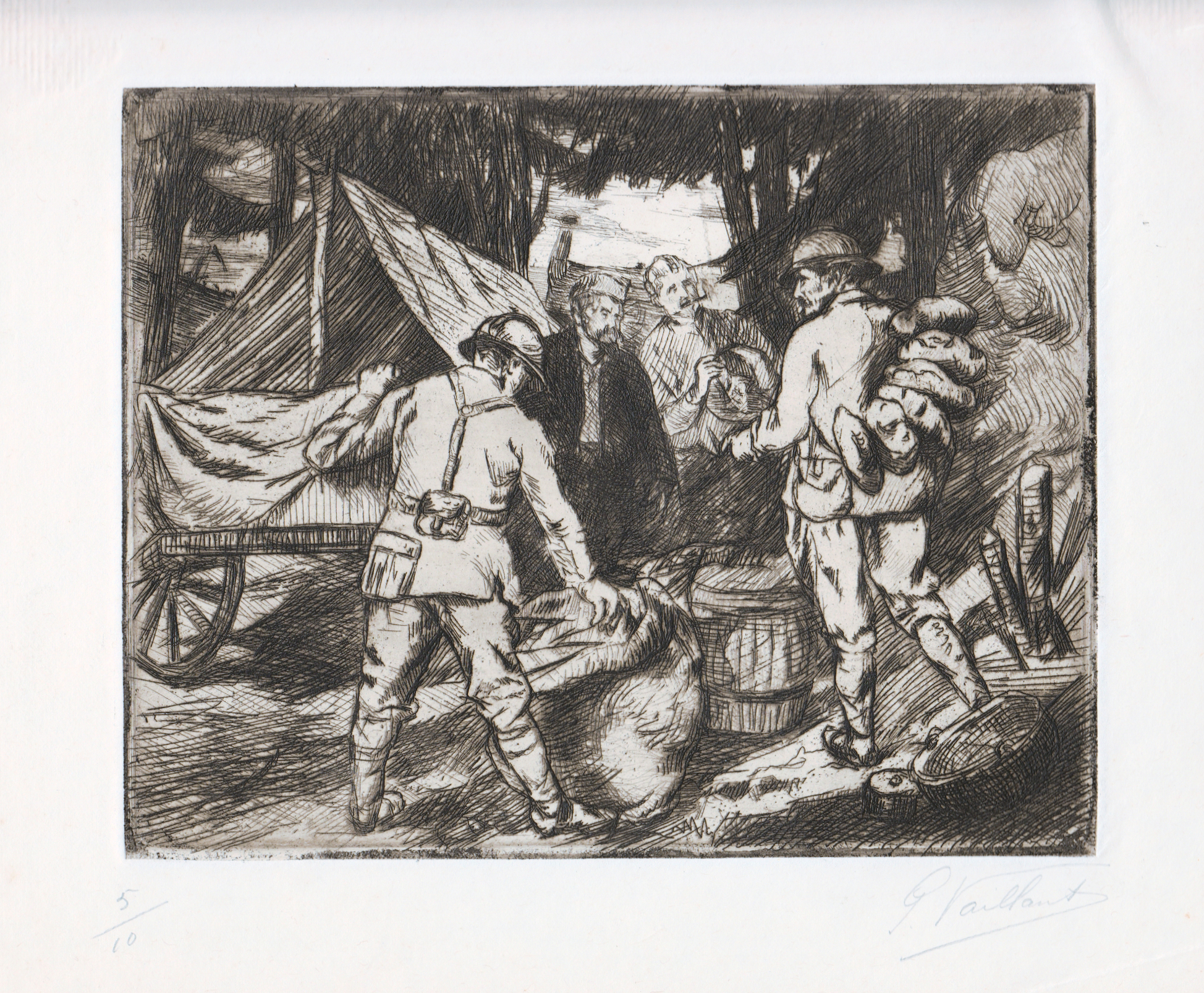 Eau-forte extraite du recueil Vie intime du poilu de Pierre Vaillant