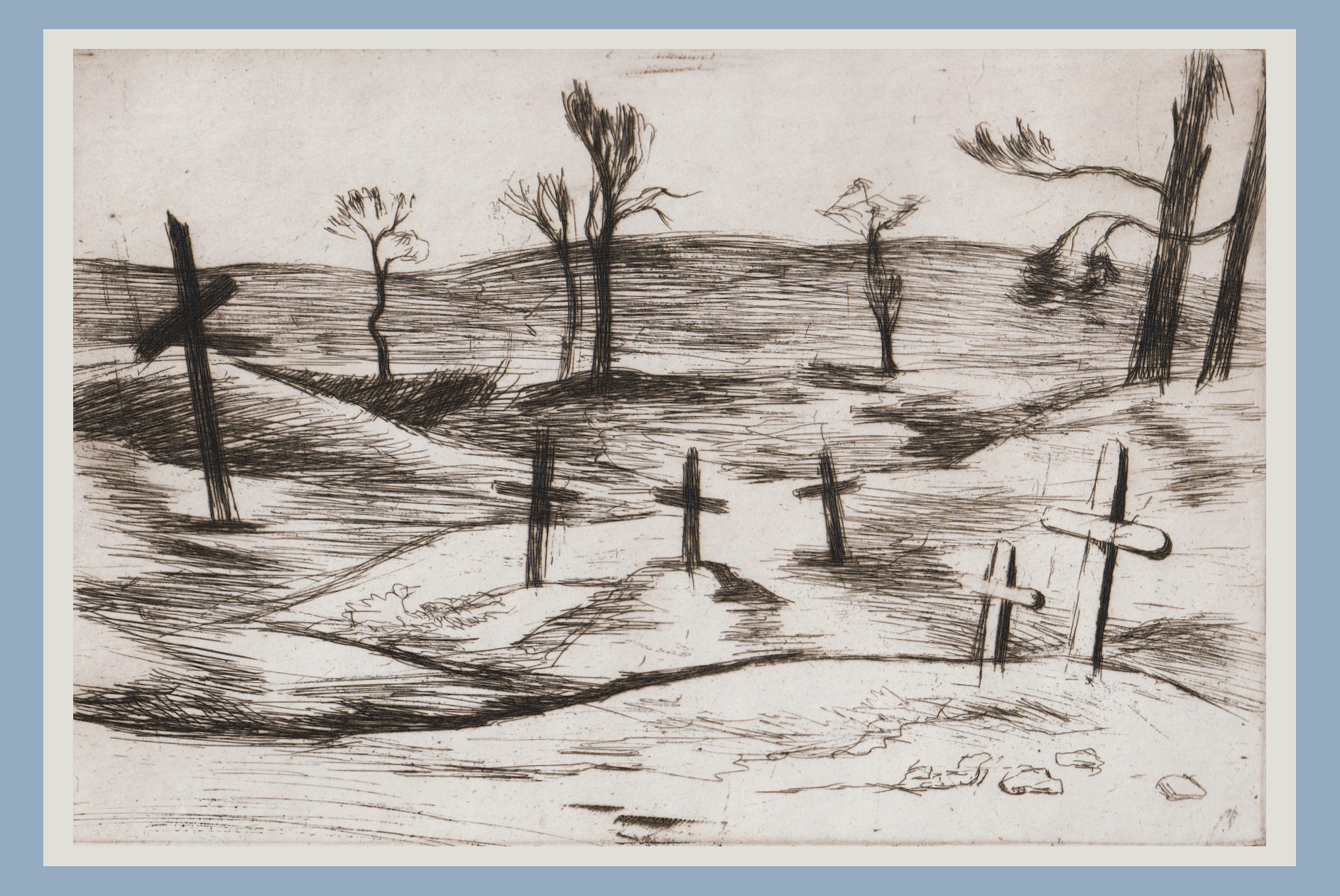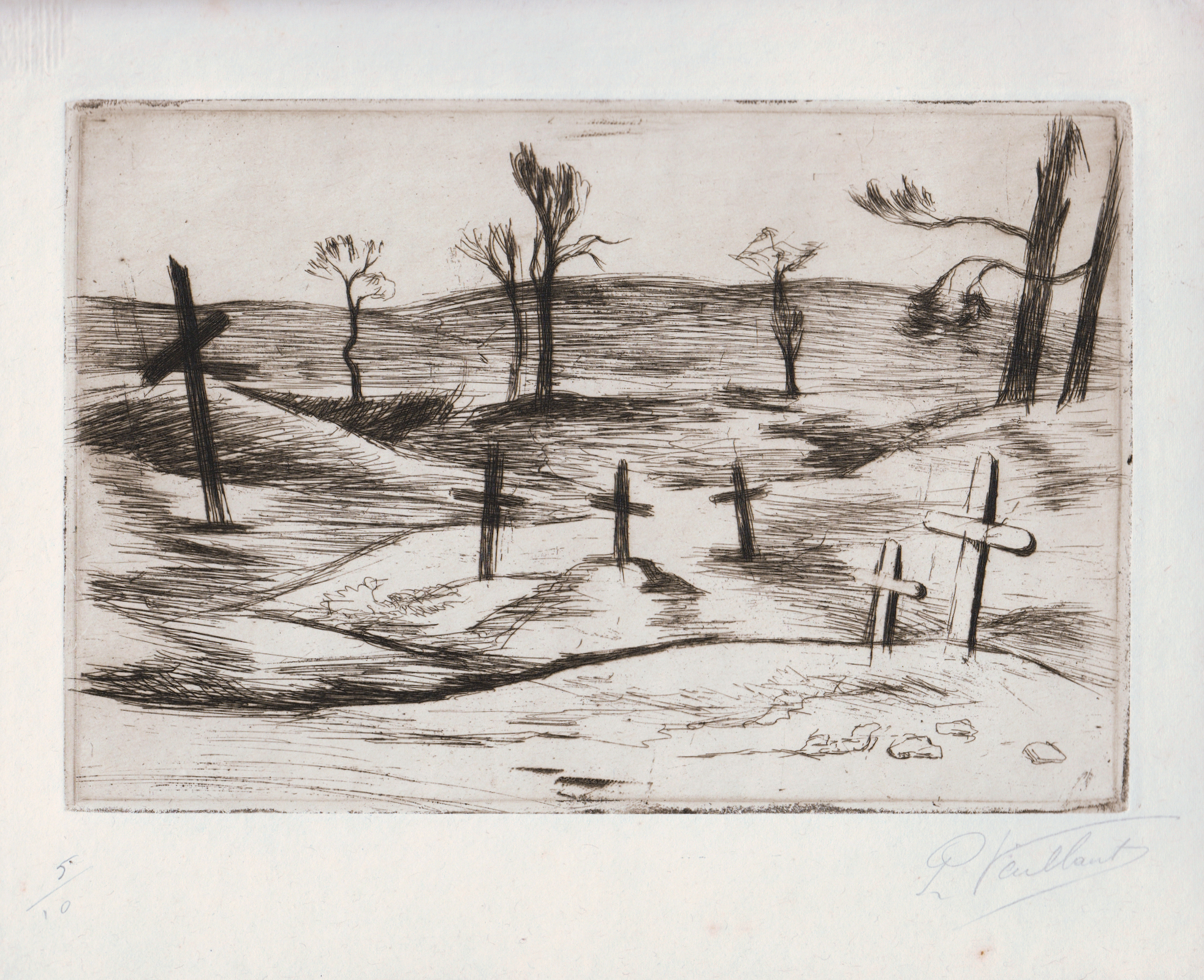 Derrière, apparaissent quelques arbres. Il y en a six comme les croix. Coïncidence ? Ou volonté de Vaillant de ne pas rester sur la seule évocation de la mort dans sa composition ?