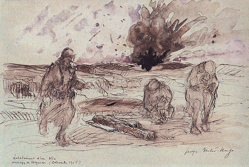« La représentation de la première ligne est-elle impossible, et, sans tomber dans les grotesques « compositions » des illustrations ultra-héroïques, la bataille elle-même, si remarquablement décrite dans maint carnet, est-elle vraiment intraduisible en dessin ? […]