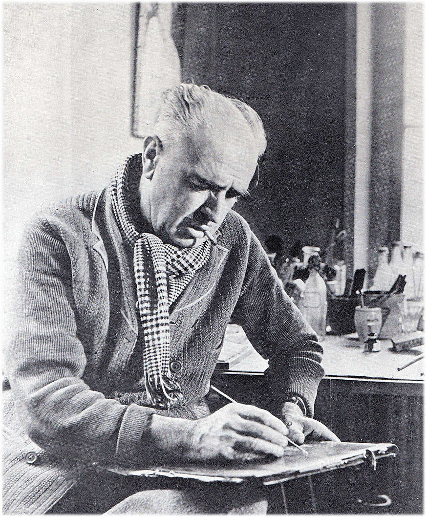 « J’ai trouvé dans la technique de l’eau-forte un complément à l’art du Dessin : elle en est la sœur mais avec quelque chose en plus, car son caractère aigu et incisif permet de traiter des thèmes très vastes sur des surfaces réduites. De plus, la pointe de l’acier pénétrant plus ou moins profondément dans le métal donne au trait, devenu ‘taille’ une intensité plus aiguë et plus expressive que celle obtenue par la plume et l’encre de Chine ».