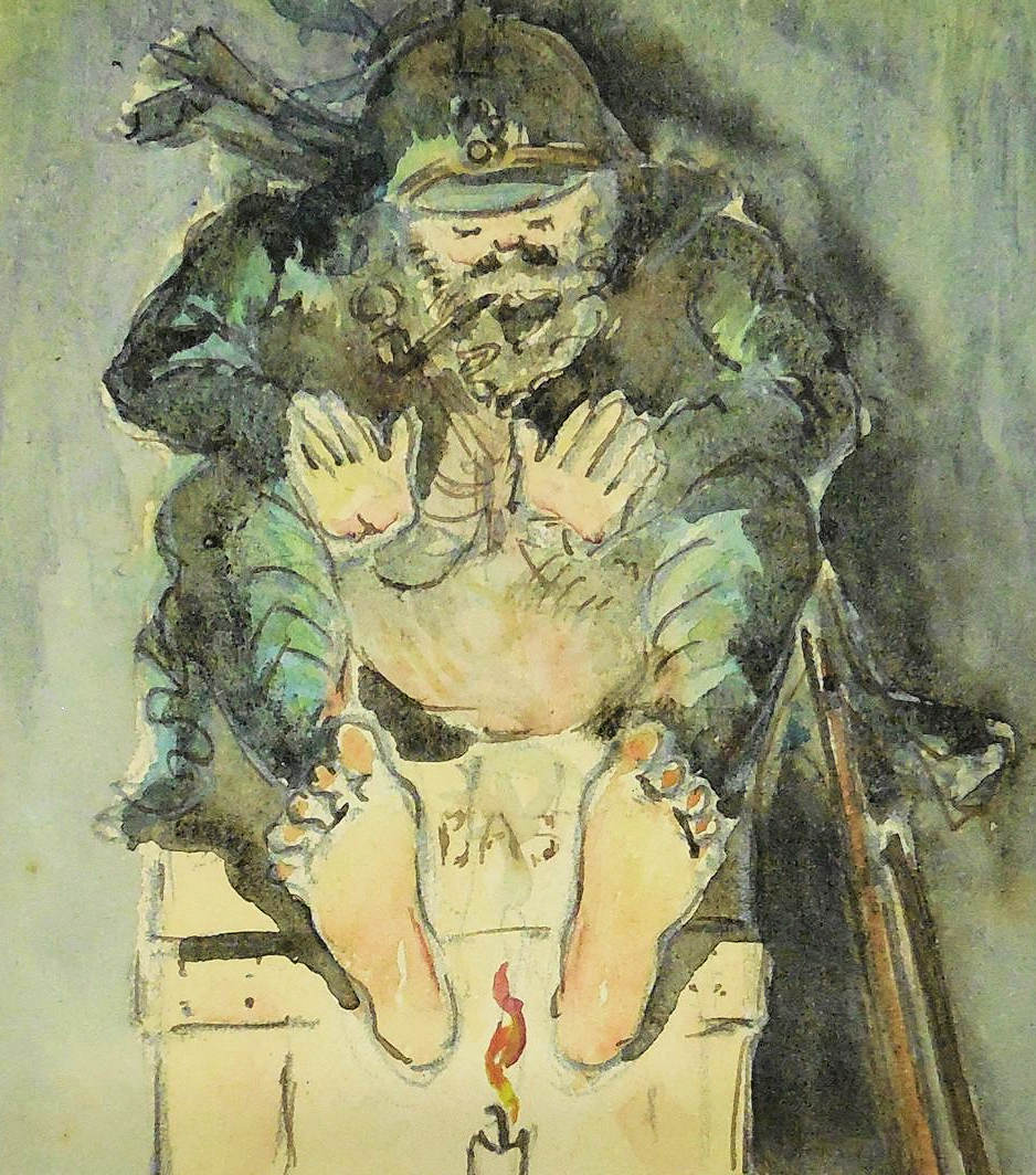 On peut admirer également le très pittoresque « Poilu à la pipe » de Gustave Pierre, les lithographies d’Alphonse Grebel, dont le poignant « Retour de la cote 125 », qui témoignent de son expérience des tranchées, le « Soldat endormi dans les ruines de l’église de Veho » de Pierre-Louis Chaux ou les œuvres d’Armand Coussens qui a réalisé de nombreuses eaux-fortes en couleurs comme ce soldat de la « Classe 15 rejoignant le front » ou cette « Cour d’hôpital » où l’on devine un jeune combattant blessé visité par sa mère. Jean-Jules Dufour jeune peintre graveur témoigne dans ses dessins réalistes de sa difficile expérience de prisonnier dans un camp allemand. Certains de ses dessins prennent comme motifs les corvées humiliantes et les souffrances supportées. On peut citer le « supplice du froid » ou « La nouvelle crucifixion ».