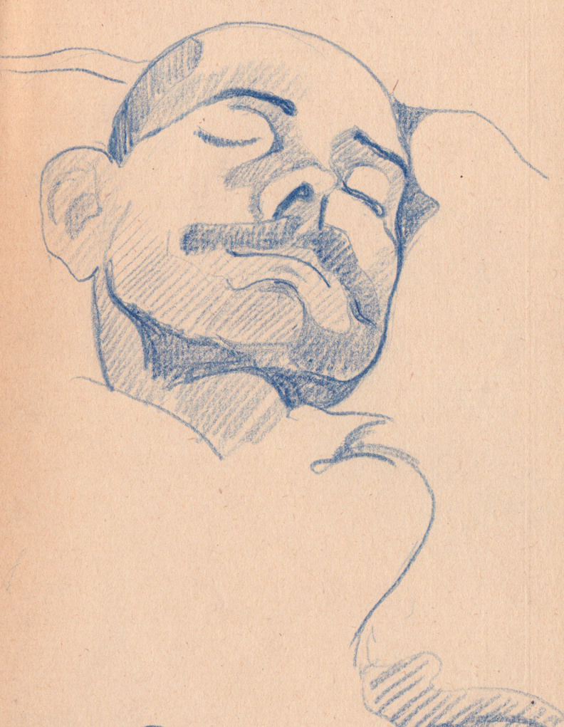 Ces hommes, dont certains semblent très jeunes, sont souvent calmes et endormis (fig. 1) ou en proie à une souffrance évidente (fig. 2). On imagine quel choc a pu être, pour cette infirmière bénévole, le spectacle des chairs meurtries et des souffrances endurées ; et combien a dû peser le sentiment de responsabilité face à la nécessité de soigner, de réconforter et d’apaiser. Grâce à ces soins quotidiens, une relation de confiance s’est installée, une proximité, qui ont permis la réalisation de ces dessins. Le regardé expose son être entier de convalescent, immobile et vulnérable, habitué au regard de la soignante, l’infirmière prolonge ses gestes apaisants par la pratique de son art, crayons de couleurs en main. De ce rapprochement entre l’expérience combattante et l’expérience soignante naissent ces portraits dans lesquels l’infirmière révèle une part intime de ses modèles qui nous les rend si proches.